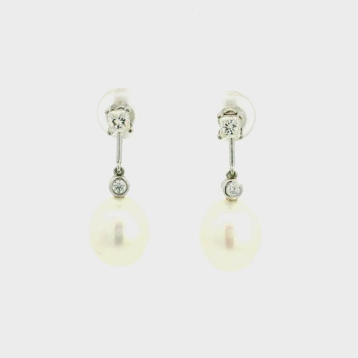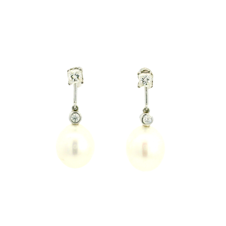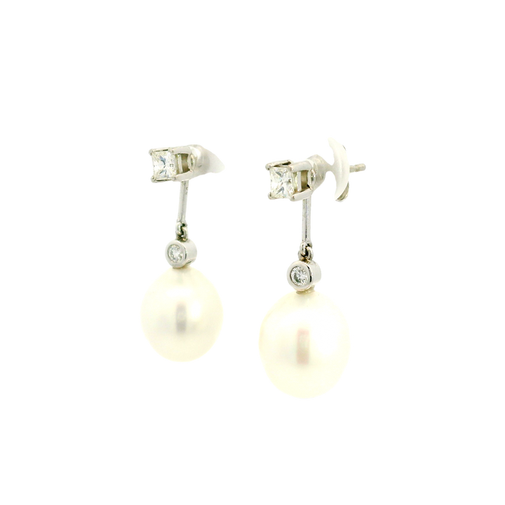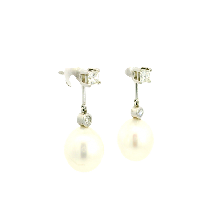 Add these graceful detachable pearl earrings to any pair of your stud earrings. These handmade 18ct white gold detachable earrings are set with 2x 10.1mm white South Sea Pearls and 2=0.08ct FG/VS round brilliant cut diamonds.