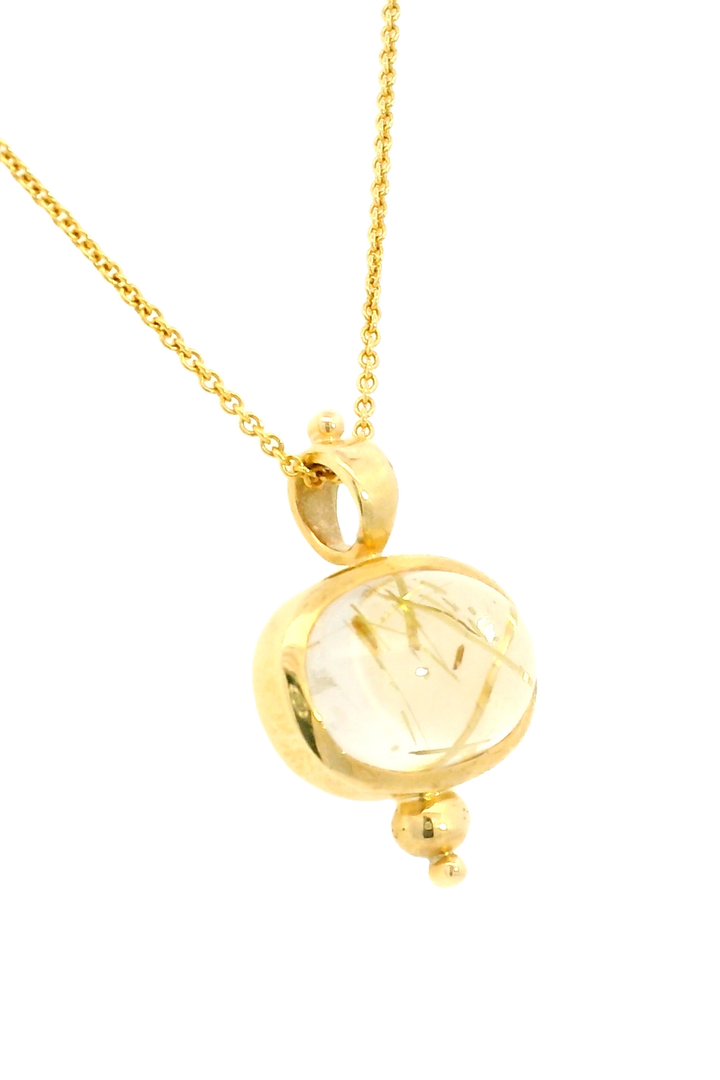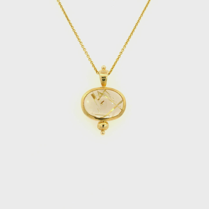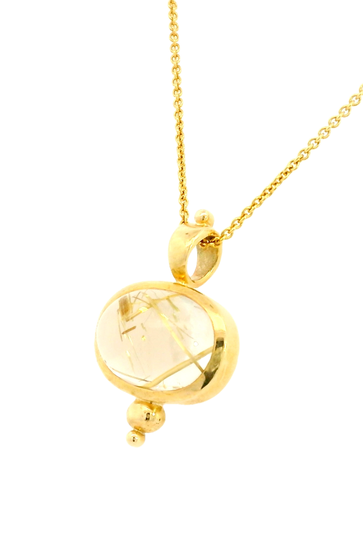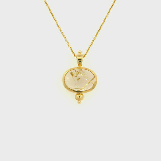 Simplicity meets elegance, with this 9ct yellow gold pendant. Featuring 1 oval cabochon Rutilated Quartz, measuring 14x10mm. Find yourself mesmerised by the incredible patterns within the natural quartz.